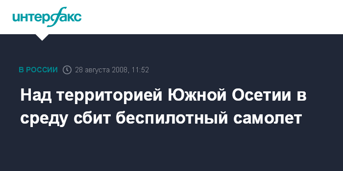 Москва. 28 августа. INTERFAX.RU - Над территорией Южной Осетии в среду силами республиканского министерства внутренних дел сбит беспилотный самолет, заявил в четверг глава республиканского ведомства Михаил Миндзаев на пресс-конференции в Цхинвали.