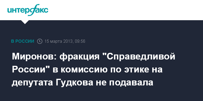 Миронов: фракция "Справедливой России" в комиссию по этике на депутата Гудкова не подавала