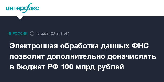 Электронная обработка данных ФНС позволит дополнительно доначислять в бюджет РФ 100 млрд рублей