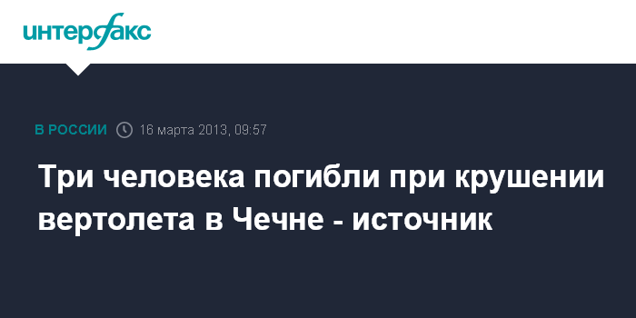 Москва. 16 марта. INTERFAX.RU - На аэродроме Ханкала в Чечне при заходе на посадку разбился вертолет Ми-8 одной из силовых структур, сообщил "Интерфаксу" по телефону источник в экстренных службах. "Вертолет заходил на посадку в условиях плохой видимости, при этом столкнувшись с землей, машина загорелась, трое из четырех находившихся на борту человек погибли, еще один госпитализирован", - отметил источник.