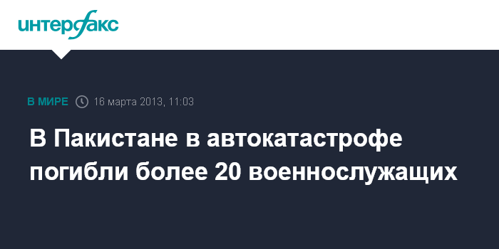 В Пакистане в автокатастрофе погибли более 20 военнослужащих