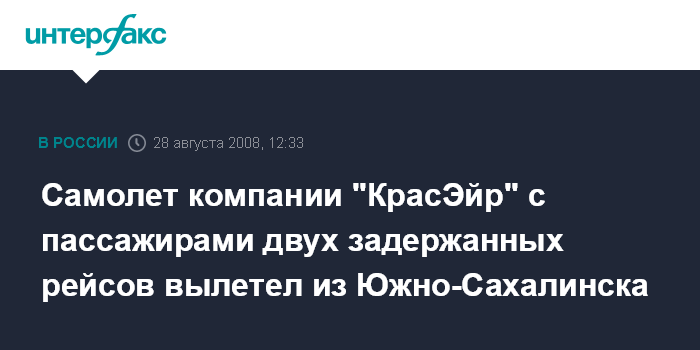 "Самолет "Ту-154" компании "КрасЭйр" покинул аэропорт Южно-Сахалинска. Все пассажиры с двух задержанных рейсов авиакомпании вылетели на борту этого лайнера", - сообщили агентству "Интерфакс - Дальний Восток" в аэропорту Южно-Сахалинска.
