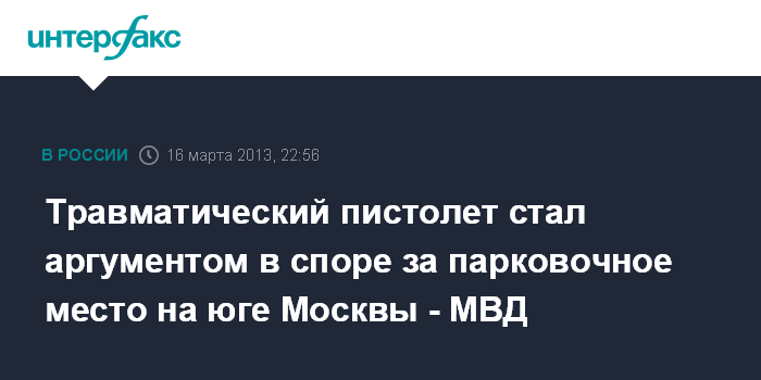 Москва. 16 марта. ИНТЕРФАКС - Спор за парковочное место закончился стрельбой из травматического оружия на юге столицы, сообщили "Интерфаксу" в пресс-службе ГУ МВД по Москве.