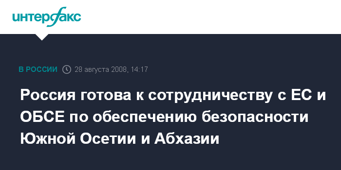 Россия готова к сотрудничеству с ЕС и ОБСЕ по обеспечению безопасности Южной Осетии и Абхазии