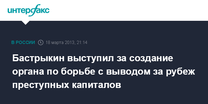 Москва. 18 марта. INTERFAX.RU - Глава Следственного комитета РФ Александр Бастрыкин предложил создать новый правоохранительный орган, способный противостоять выводу преступных капиталов за рубеж.