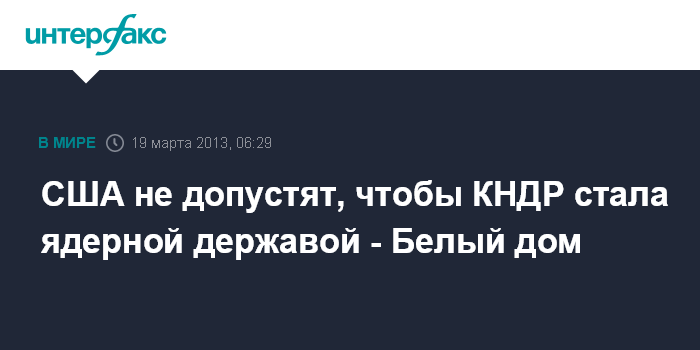 Вашингтон. 19 марта. ИНТЕРФАКС - Соединенные Штаты не намерены признавать Северную Корею в качестве ядерной державы, заявил официальный представитель американского Белого дома Джей Карни.