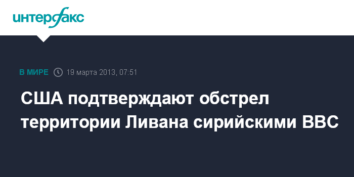 Вашингтон. 19 марта. INTERFAX.RU - Американские власти подтверждают факт ракетного обстрела территории северной части Ливана с самолетов сирийских ВВС, заявила в понедельник представитель госдепартамента США Виктория Нуланд.