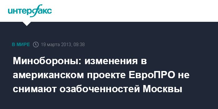 Минобороны: изменения в американском проекте ЕвроПРО не снимают озабоченностей Москвы