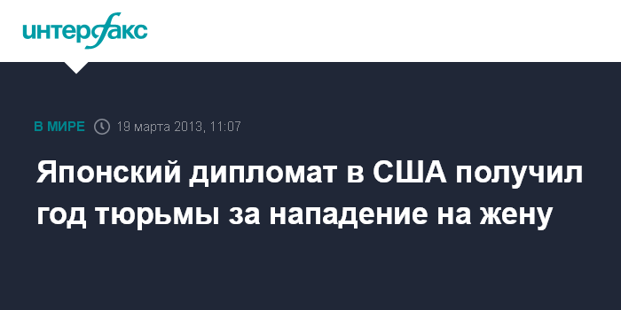 Вашингтон. 19 марта. INTERFAX.RU - Суд США приговорил японского вице-консула в Калифорнии Йосиаки Нагая к году тюремного заключения за оскорбление жены, сообщили во вторник местные СМИ.