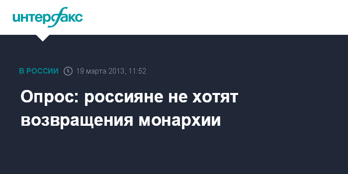 Москва. 19 марта. INTERFAX.RU - Более четверти россиян не против того, чтобы в нашей стране возродилась монархия, но назвать человека, который мог бы стать царем, они пока не могут, показал опрос.