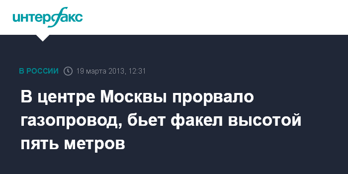 Москва. 19 марта. INTERFAX.RU - Возгорание газа произошло после повреждения газовой трубы в центре Москвы, сообщил "Интерфаксу" источник в правоохранительных органах.