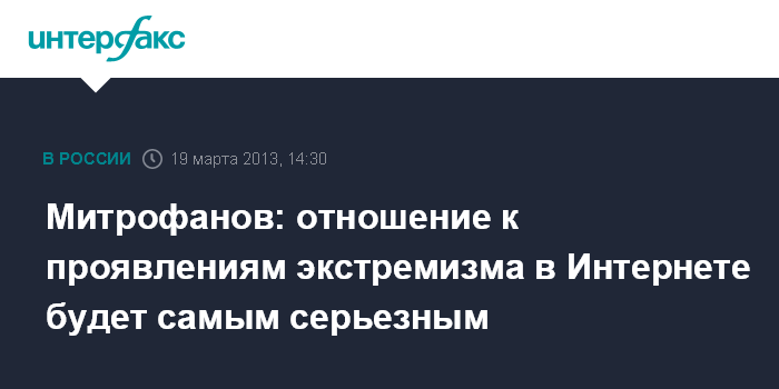 "Я думаю, что борьба с экстремизмом в Интернете будет приближаться к борьбе с экстремизмом вне Интернета", - заявил Митрофанов во вторник на пресс-конференции в Москве. "Интернет - точная такая же сфера, как и любая", - сказал он.