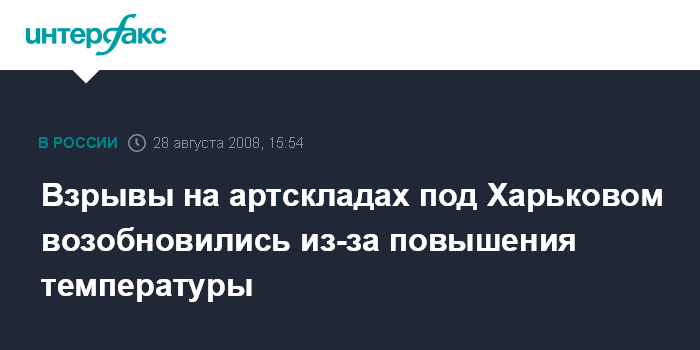 Москва. 28 августа. INTERFAX.RU - В Генеральном штабе Вооруженных Сил Украины прогнозируют, что взрывы на складах возле города Лозовое Харьковской области продолжатся в четверг и пятницу, а МЧС уже отмечает рост количества взрывов в связи с повышением температуры воздуха.