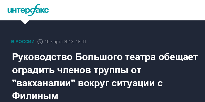 Руководство Большого театра обещает оградить членов труппы от "вакханалии" вокруг ситуации с Филиным