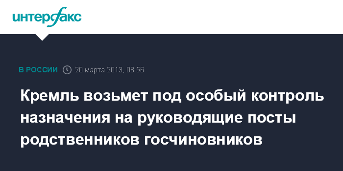 "Принято решение взять под особый контроль администрации президента все назначения на руководящие посты как в Центре, так и в регионах родственников чиновников", - сообщил источник издания в Кремле.