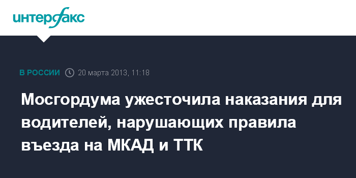Москва. 20 марта. INTERFAX.RU - Мосгордума на очередном заседании в среду одобрила в первом чтении проект закона, ужесточающего административную ответственность за нарушения ограничений въезда и движения грузового автотранспорта по территории Москвы.