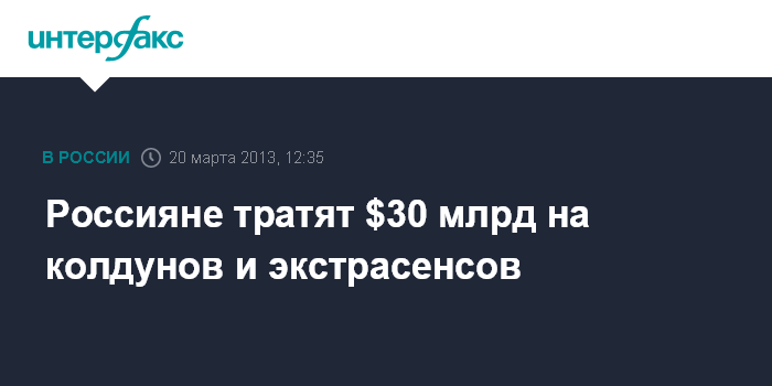 Как сообщил Бузиашвили в среду на пресс-конференции в центральном офисе "Интерфакса", около $17 млрд вывозятся на лечение за границу, и более $30 млрд тратится на экстрасенсов, колдунов и так далее.