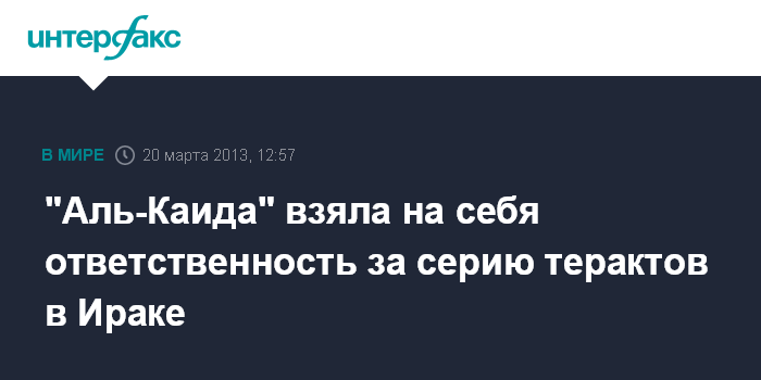Багдад. 20 марта. INTERFAX.RU - Террористы из "Аль-Каиды" в среду взяли на себя ответственность за теракты, осуществленные накануне в столице Ирака.