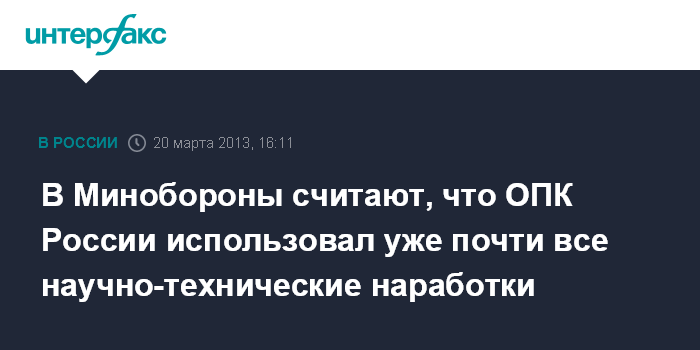 В Минобороны считают, что ОПК России использовал уже почти все научно-технические наработки