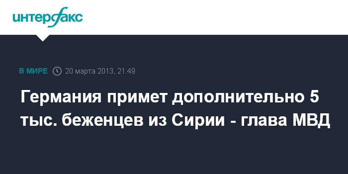 По словам главы МВД, 3 тыс. беженцев будет предоставлено убежище в Германии с июня 2013 г., еще 2 тыс. будут приняты позднее в этом же году.