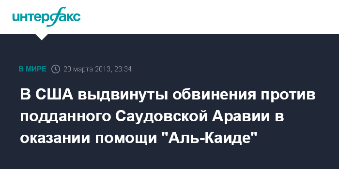 В США выдвинуты обвинения против подданного Саудовской Аравии в оказании помощи "Аль-Каиде"