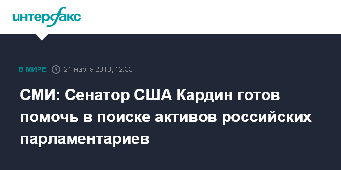 СМИ: Сенатор США Кардин готов помочь в поиске активов российских парламентариев