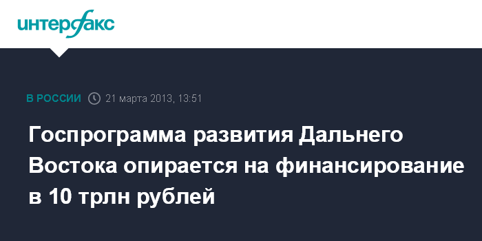 Госпрограмма развития Дальнего Востока опирается на финансирование в 10 трлн рублей