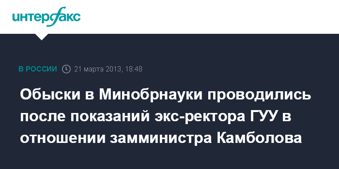 Обыски в Минобрнауки проводились после показаний экс-ректора ГУУ в отношении замминистра Камболова