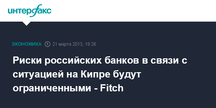 Риски российских банков в связи с ситуацией на Кипре будут ограниченными - Fitch