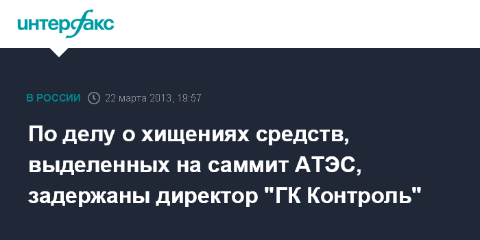 По делу о хищениях средств, выделенных на саммит АТЭС, задержаны директор "ГК Контроль"