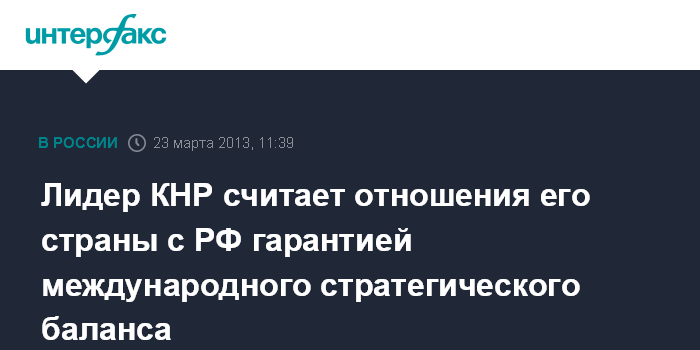 Москва. 23 марта. INTERFAX.RU - Российско-китайские отношения являются гарантией мирового стратегического баланса, заявил председатель КНР Си Цзиньпин.