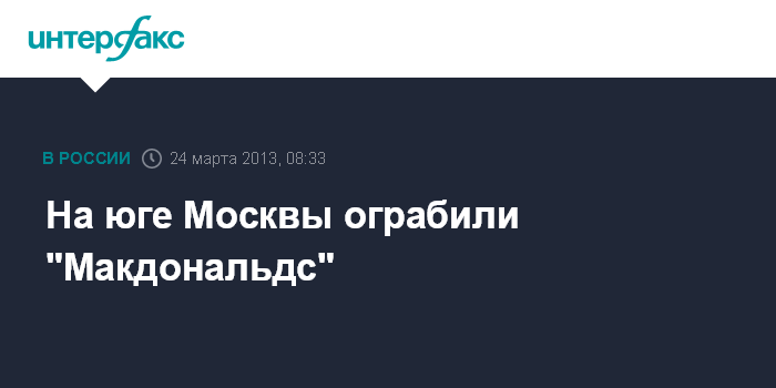 Москва. 24 марта. ИНТЕРФАКС - Трое неизвестных ограбили "Макдональдс" на юге столицы, сообщил "Интерфаксу" источник в правоохранительных органах.