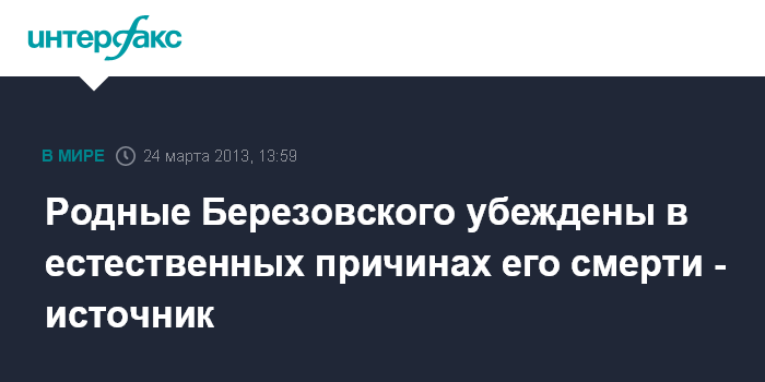 Родные Березовского убеждены в естественных причинах его смерти - источник