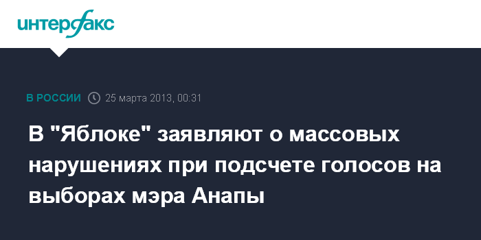 Москва. 25 марта. ИНТЕРФАКС - Наблюдатели от партии "Яблоко" фиксируют массовые нарушения избирательного законодательства в ходе подсчета голосов на выборах мэра Анапы (Краснодарский край), сообщил "Интерфаксу" лидер партии Сергей Митрохин.