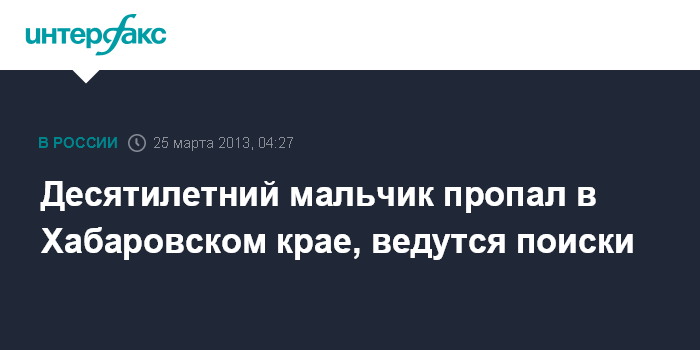 Десятилетний мальчик пропал в Хабаровском крае, ведутся поиски