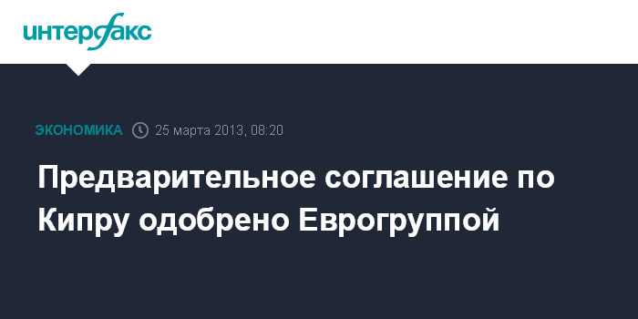 Предварительное соглашение по Кипру одобрено Еврогруппой