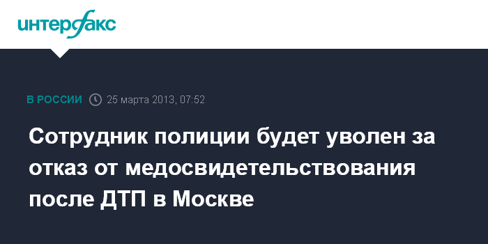 Сотрудник полиции будет уволен за отказ от медосвидетельствования после ДТП в Москве