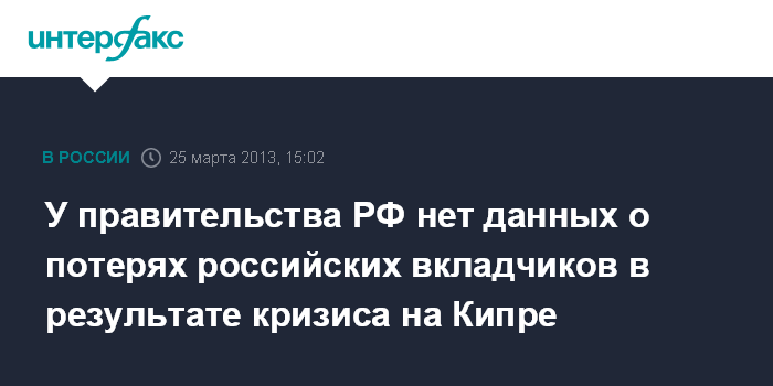 У правительства РФ нет данных о потерях российских вкладчиков в результате кризиса на Кипре