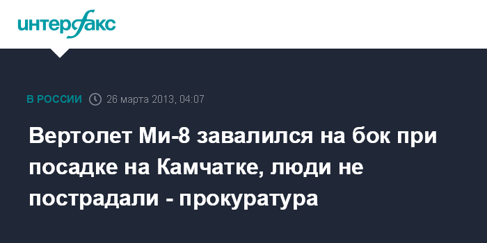 Петропавловск-Камчатский. 26 марта. ИНТЕРФАКС - ДАЛЬНИЙ ВОСТОК - Камчатская транспортная прокуратура начала проверку по факту аварийной посадки вертолета Ми-8 компании "Камчатские авиалинии" на территории Кроноцкого заповедника.
