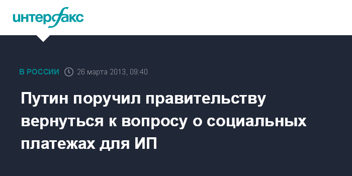 Путин поручил правительству вернуться к вопросу о социальных платежах для ИП