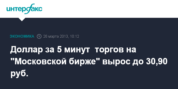 Доллар за 5 минут торгов на "Московской бирже" вырос до 30,90 руб.