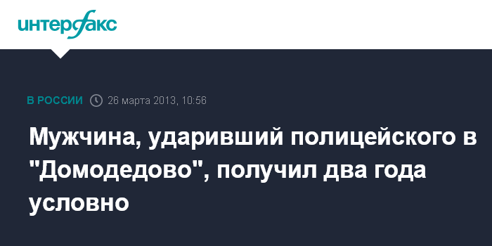 Мужчина, ударивший полицейского в "Домодедово", получил два года условно