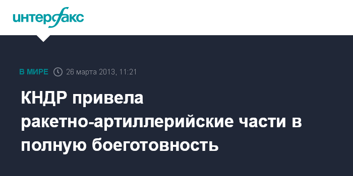 Сеул. 26 марта. INTERFAX.RU - Северокорейское командование привело в полную боеготовность все ракетно-артиллерийские части вооруженных сил страны, сообщает во вторник агентство ЦТАК.
