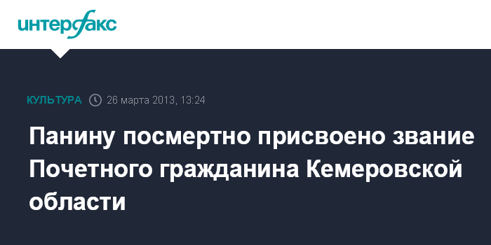 Панину посмертно присвоено звание Почетного гражданина Кемеровской области