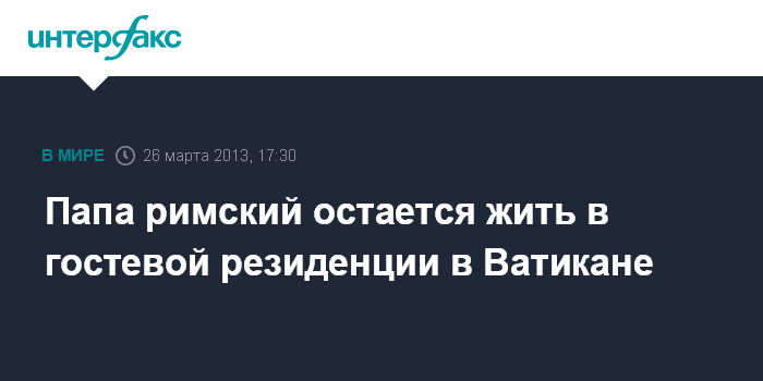 Папа римский остается жить в гостевой резиденции в Ватикане