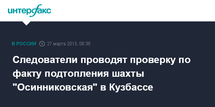 Кемерово. 27 марта. INTERFAX.RU - Следственные органы Следственного комитета РФ по Кемеровской области примут процессуальное решение по результатам проводимой доследственной проверки по факту подтопления шахты "Осинниковская" в регионе, сообщает в среду пресс-служба ведомства.