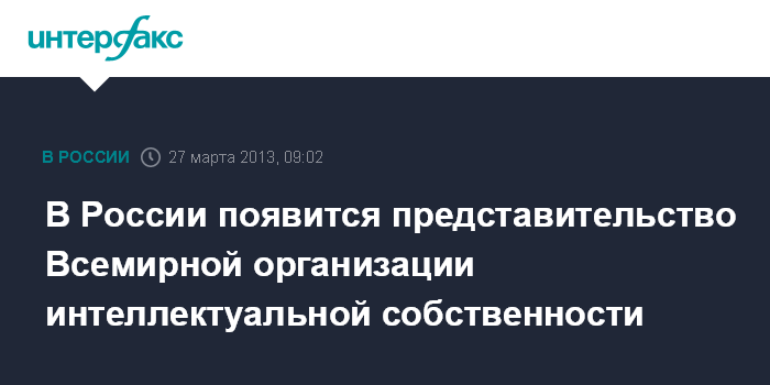 В России появится представительство Всемирной организации интеллектуальной собственности