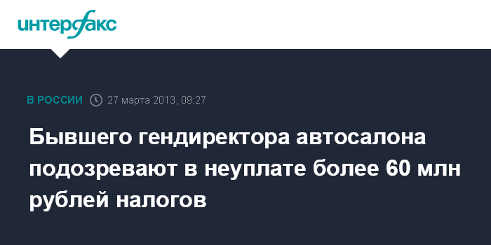 Бывшего гендиректора автосалона подозревают в неуплате более 60 млн рублей налогов