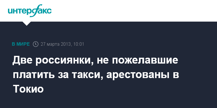 Токио. 27 марта. INTERFAX.RU - Японская полиция арестовала двух россиянок, которые сначала отказались платить за такси, а потом напали на водителя, передают в среду местные СМИ.