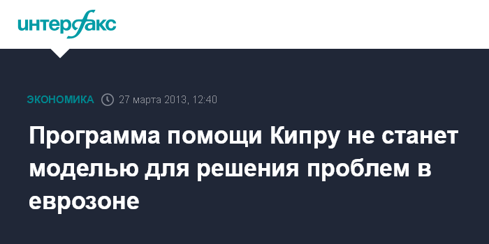 Программа помощи Кипру не станет моделью для решения проблем в еврозоне